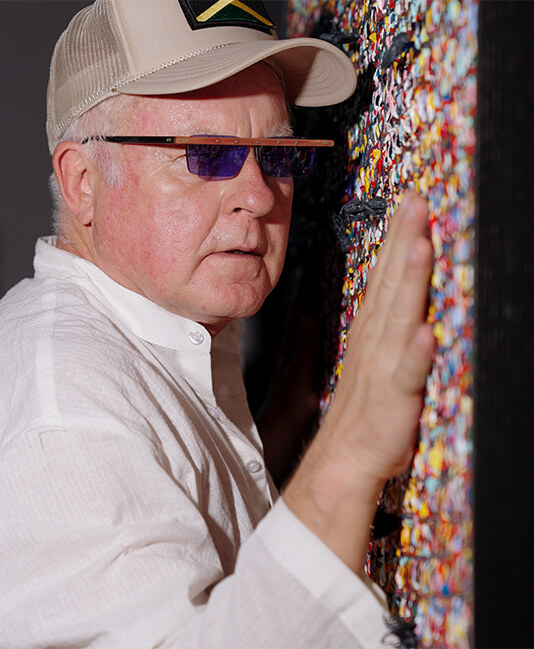 Welcome to the vibrant world of Ed Niedzielski, a visionary artist whose work transcends the traditional boundaries of art, creating immersive experiences that captivate and transform spaces. Born and raised in the culturally rich city of Toronto, Ed now resides in a beautifully refurbished warehouse in Hamilton Harbour, where his creative journey continues to evolve. His unique path, from studying fabric design at Sheridan College School of Design to becoming a renowned real estate agent, and finally, a celebrated artist, reflects a dynamic blend of influences that breathe life into his extraordinary creations.